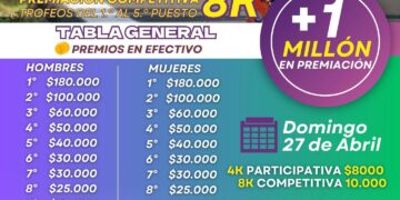 Trofeos del 1.º al 5.º puesto y premios en efectivo para los 10 primeros en la categoría general (hombres y mujeres), con hasta $180.000 para el 1.º lugar y $25.000 al mejor local.