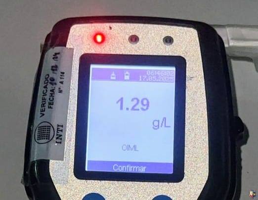 Posteriormente, efectivos de Policía Caminera se hicieron presentes en el hospital y le realizaron el alcotest al hombre, el cual arrojó resultado positivo de 1,29 gr/lts de alcohol en sangre.