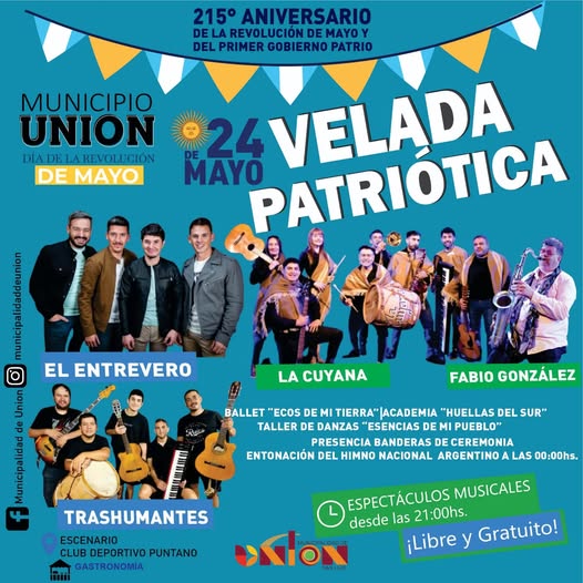 Este 24 de mayo en el Escenario Club Deportivo Puntano se realizará una «Velada Patriótica» en vísperas del día de nuestra Patria.