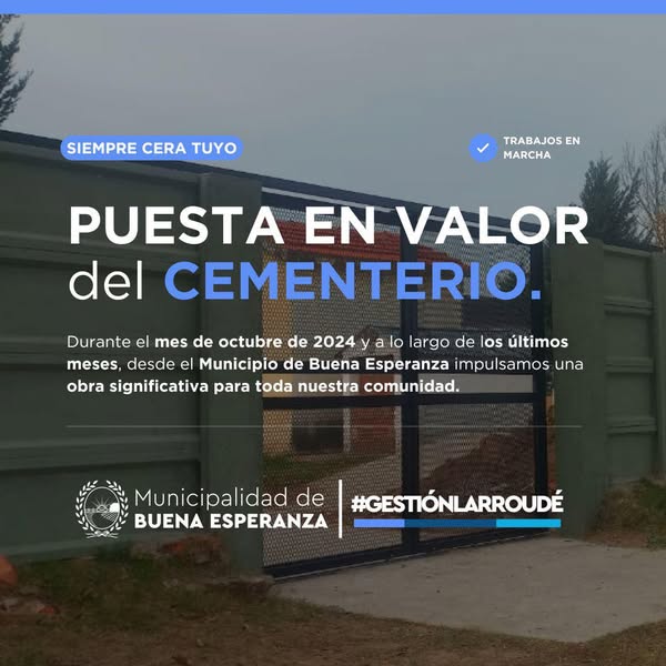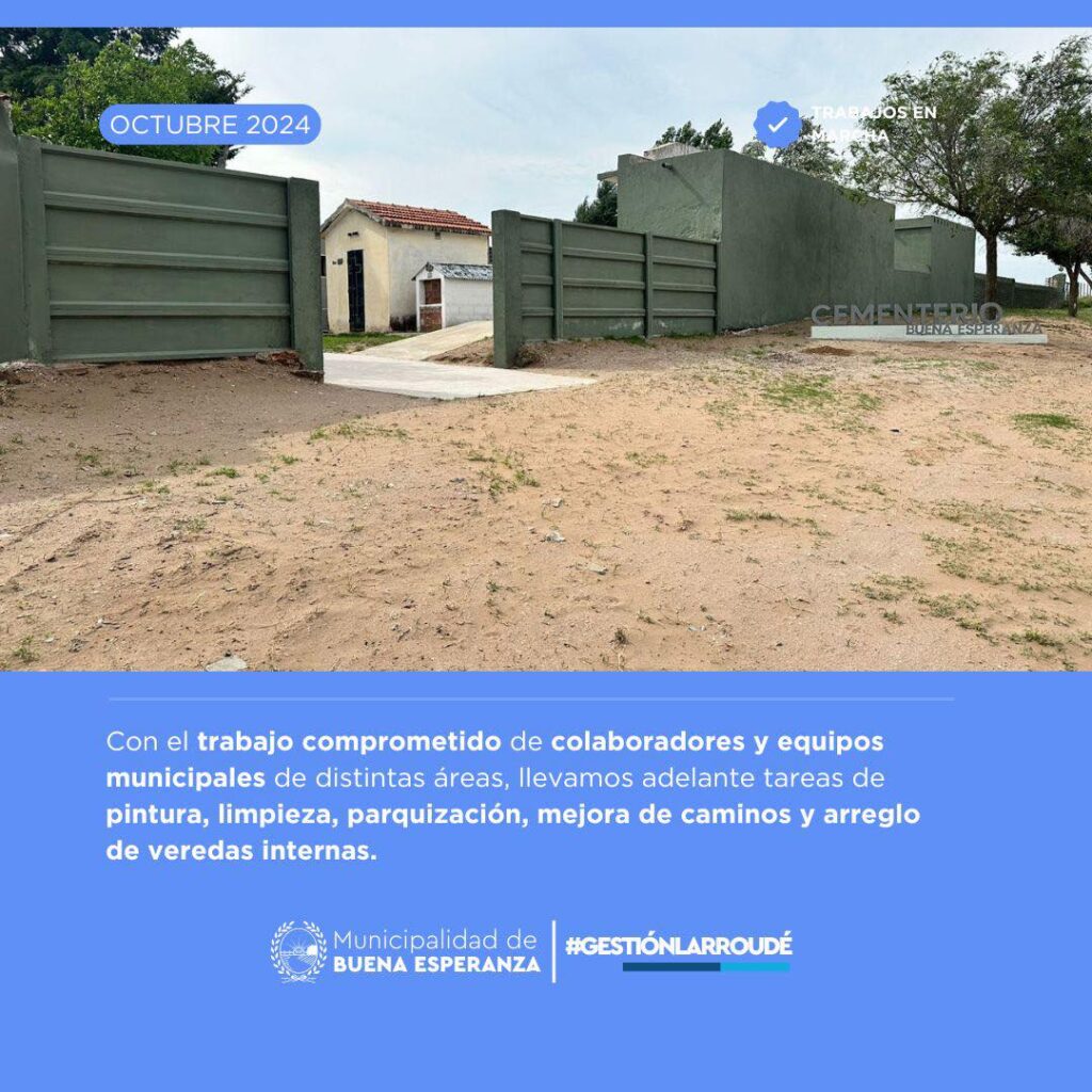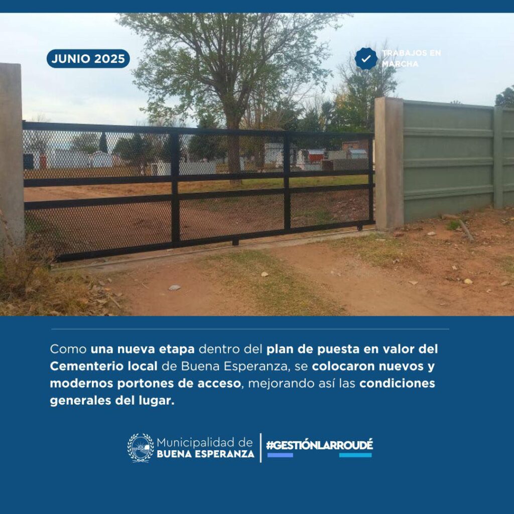 Como una nueva etapa dentro del plan de puesta en valor del Cementerio local de Buena Esperanza, se colocaron nuevos y modernos portones de acceso, mejorando así las condiciones generales del lugar.