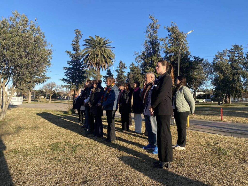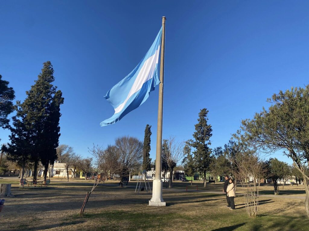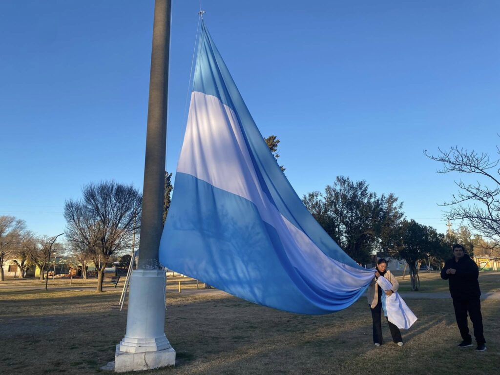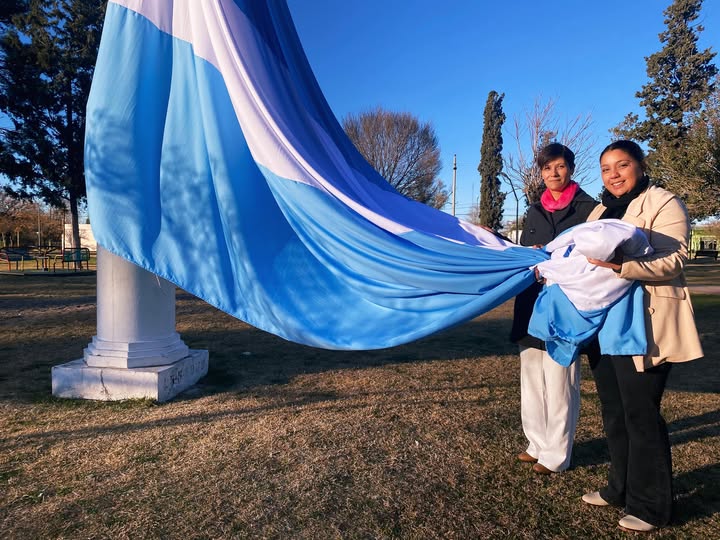 Una vecina de Buena Esperanza donó una bandera de grandes dimensiones. Se trata de Analia Torres, quien con compromiso, dedicación y amor por su pueblo, confeccionó la bandera que flameó durante el acto oficial del Día de la Bandera.