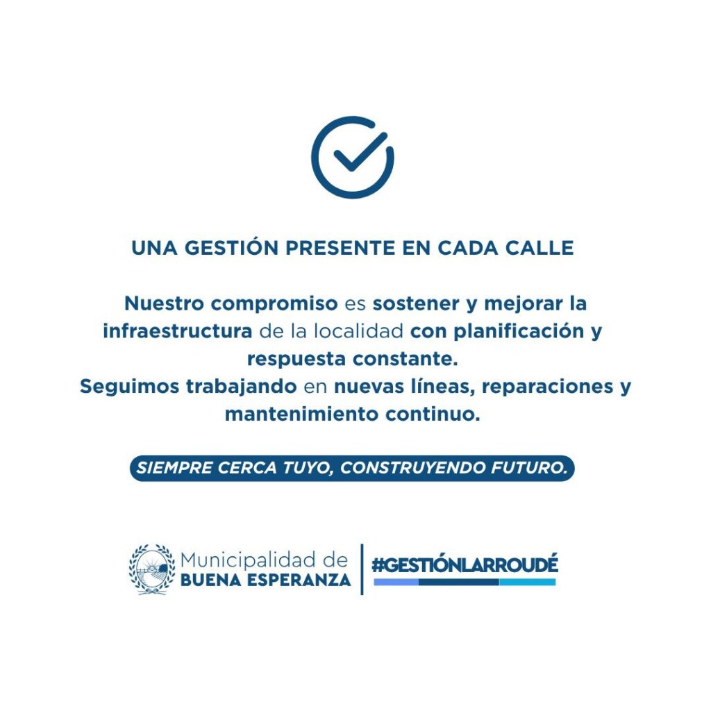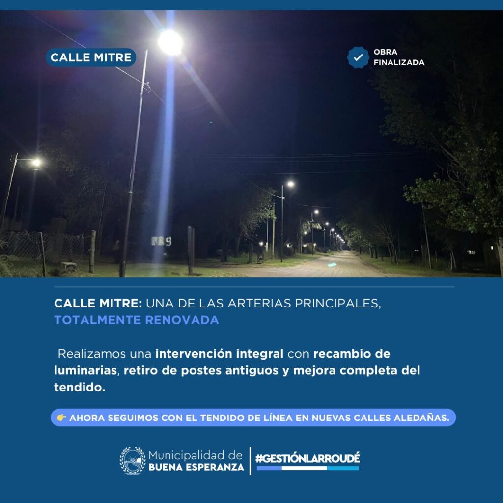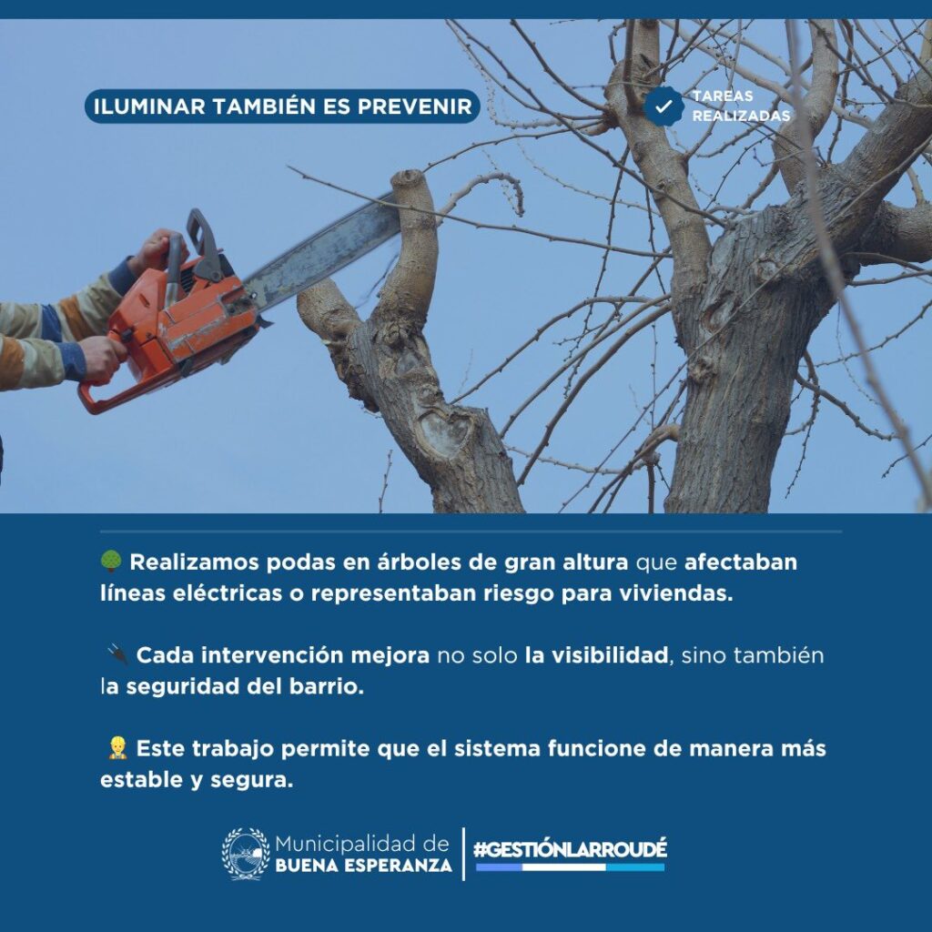 La Municipalidad de Buena Esperanza lleva a cabo un permanente trabajo en la luminaria de cada barrio y lugar de la localidad para hacerla más segura y bella.