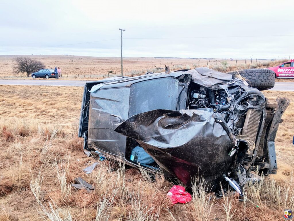 A raíz del siniestro vial, las cinco personas quedaron atrapadas en la camioneta, por lo que personal de Bomberos Voluntarios de Unión trabajó para poder sacar a los ocupantes del interior del habitáculo.