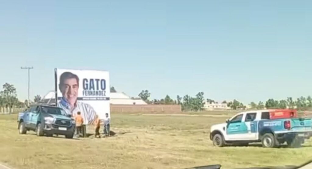 Bajan cartelería del Gato Fernández con vehículos oficiales