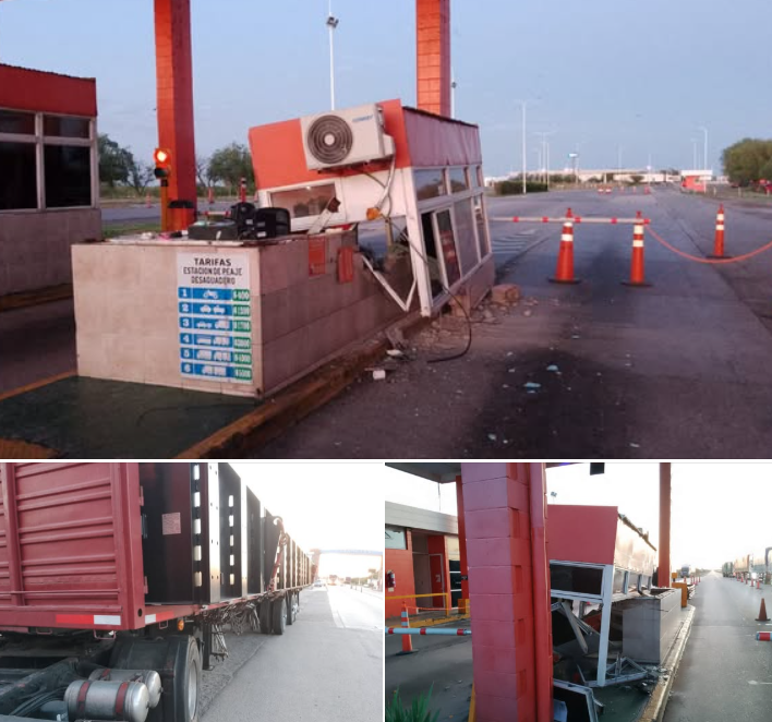 De acuerdo a las averiguaciones, un camión Iveco con semirremolque que circulaba de este a oeste impactó de lleno contra una de las cabinas de cobro, provocando daños materiales de consideración en la estructura.