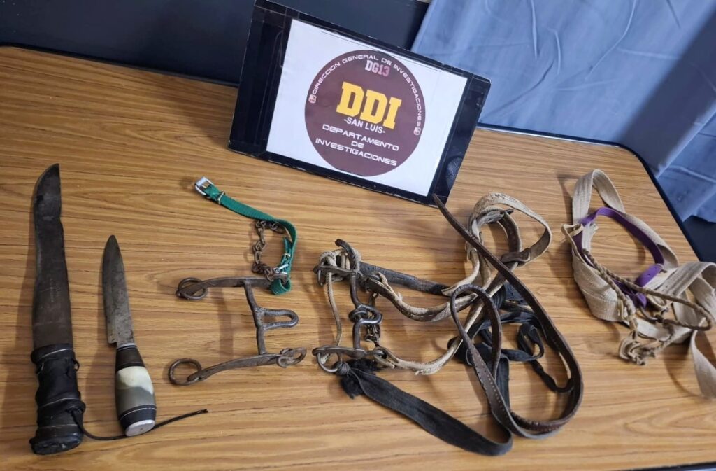 Durante los procedimientos, los efectivos secuestraron un automóvil Ford Falcon, como así también frenos de caballo, un bocado de metal y cuchillos, elementos que serían de interés para la causa y que reúnen características similares a las denunciadas como sustraídas.