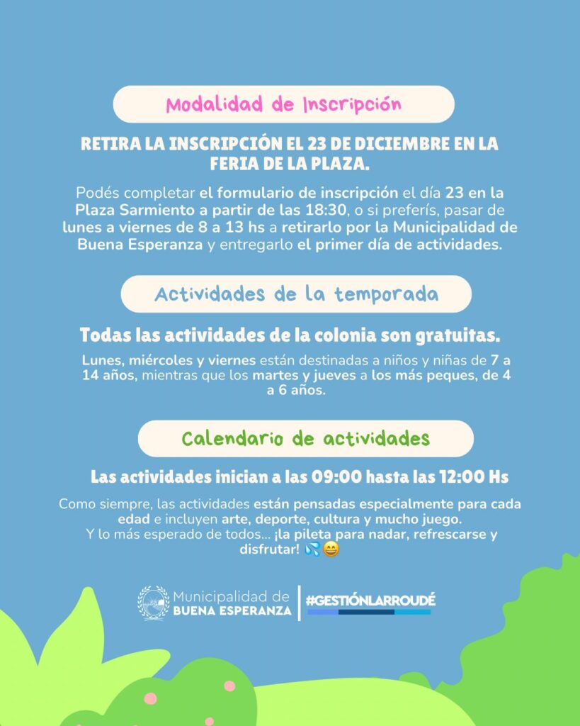 Arranca la Colonia de Verano ’26 con juegos, risas y mucha diversión para disfrutar a pleno las vacaciones en Buena Esperanza