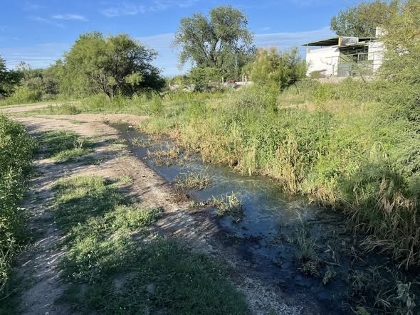 Las imágenes publicadas por vecinos muestran como las aguas servidas terminan decantando en surcos que conducen al río. Miguel el vecino que lo compartió en sus redes, añadió a su publicación: «Río de sangre y mugre saliendo a nuestro Río Conlara».