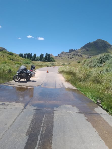 Personal de bomberos voluntarios de La Carolina, asistieron en un accidente de tránsito ocurrido en un badén, donde una motocicleta se deslizó por lo resbaladizo de la carpeta asfáltica donde pasa el agua.