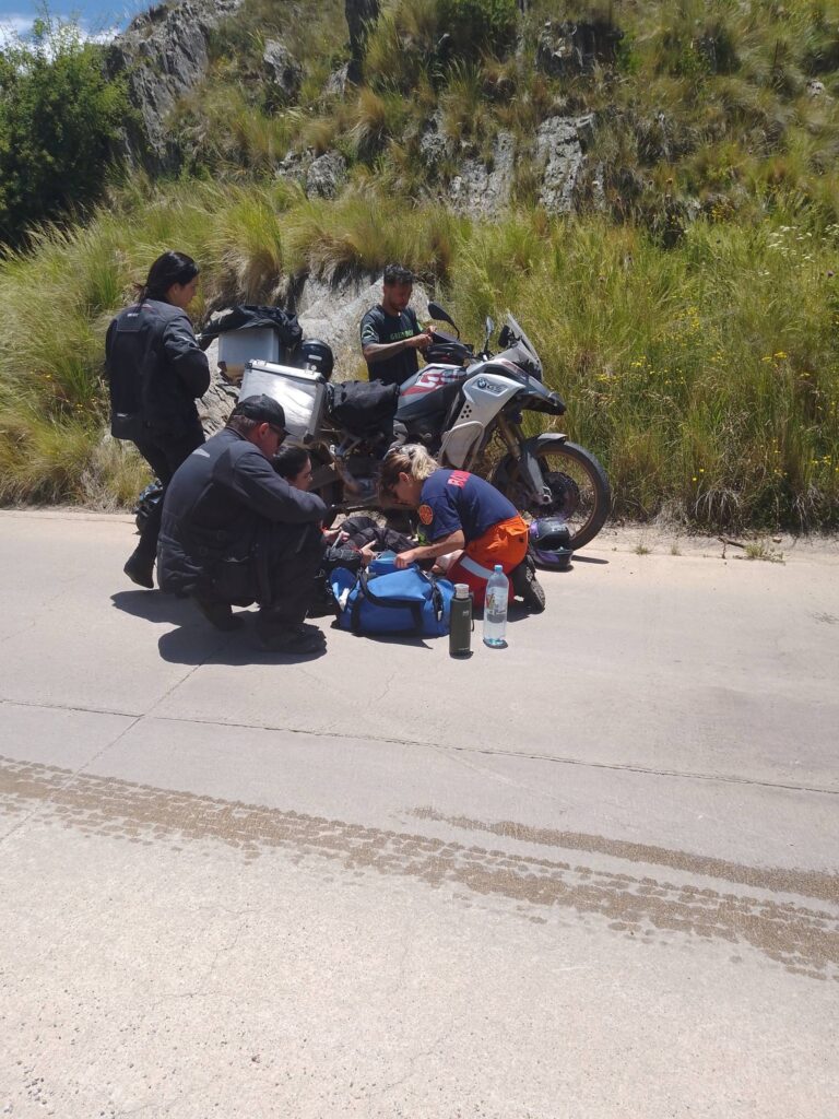 Como consecuencia del hecho, la acompañante del conductor de una moto de alta cilindrada, resultó con una lesión en el tobillo, siendo asistida en el lugar por el personal y posteriormente derivada para su correspondiente atención médica.