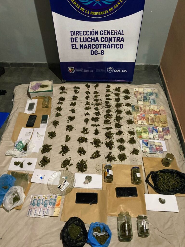 El pasado viernes 16 de enero, personal de la Dirección General de Lucha Contra el Narcotráfico realizó dos allanamientos en la ciudad de Villa de Merlo, en el marco de una investigación por infracción a la Ley Nacional de Estupefacientes N.º 23.737.