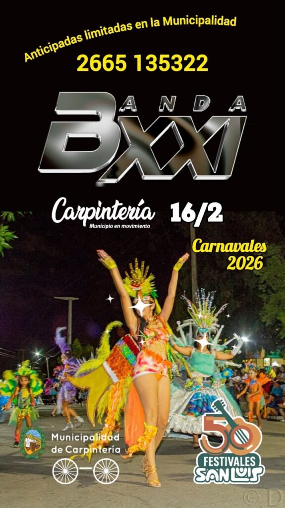 Este lunes 16, el corazón de las Sierras de los Comechingones se llenará de murgas y colores con los Carnavales en Carpintería. Desde la municipalidad, a través de sus redes sociales, informaron que las entradas anticipadas tienen un valor de $8.000, y se pueden adquirir al siguiente número: 2665-135322. La Banda XXI será la encargada del cierre artístico.