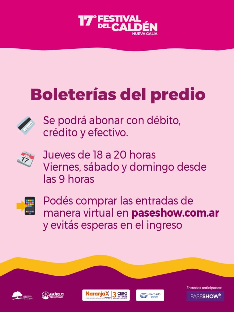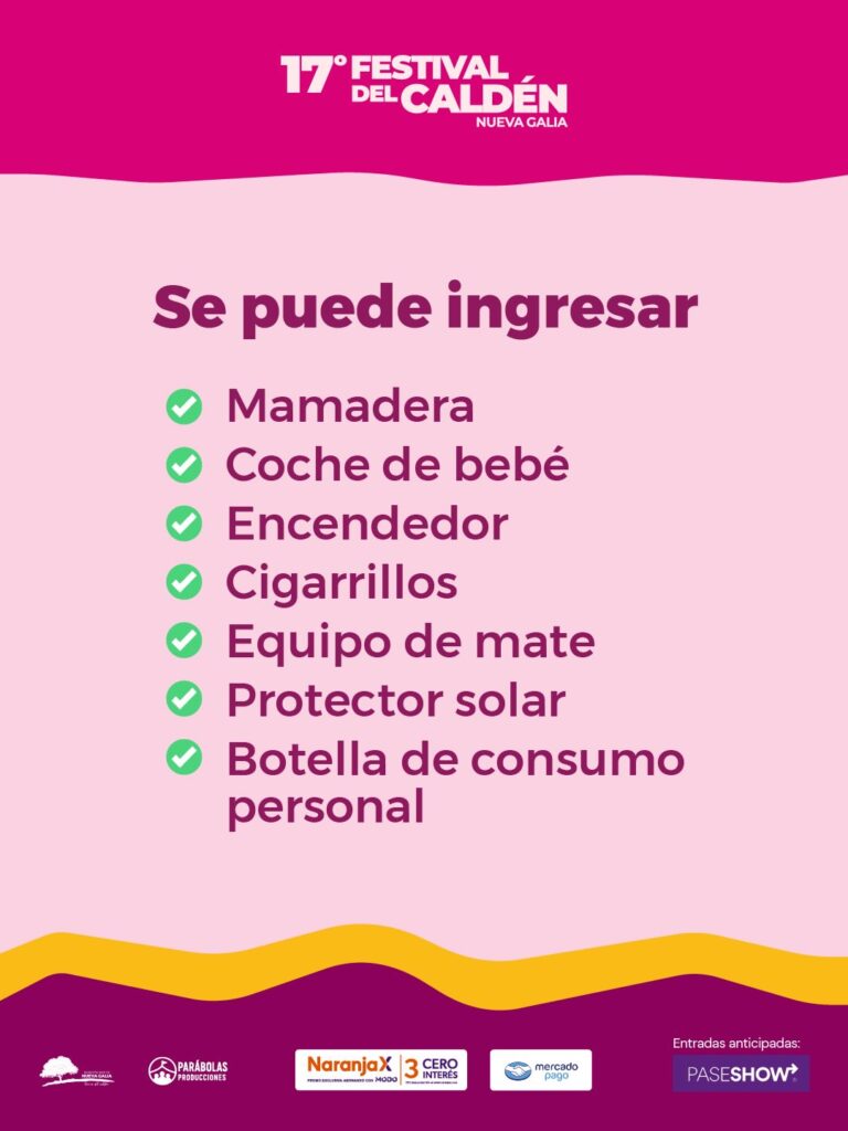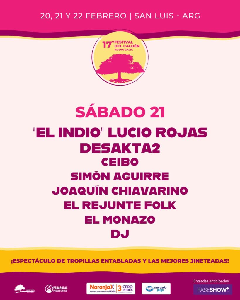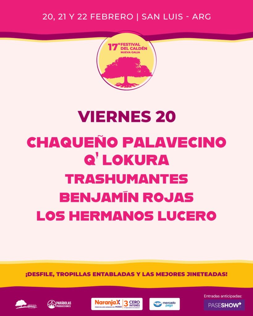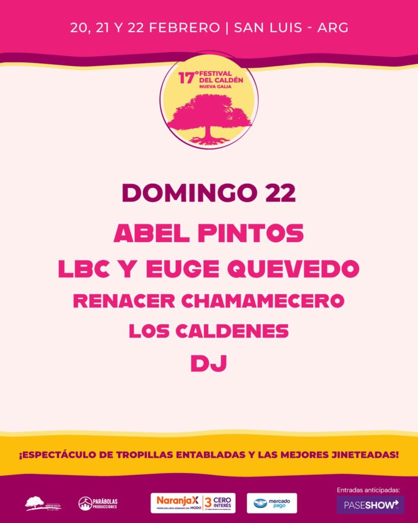 Además de los shows musicales, el festival ofrecerá desfile, tropillas entabladas y las mejores jineteadas, manteniendo viva la tradición criolla que caracteriza al evento. Las entradas anticipadas pueden adquirirse a través de PaseShow, con opciones de pago mediante Naranja X y Mercado Pago.