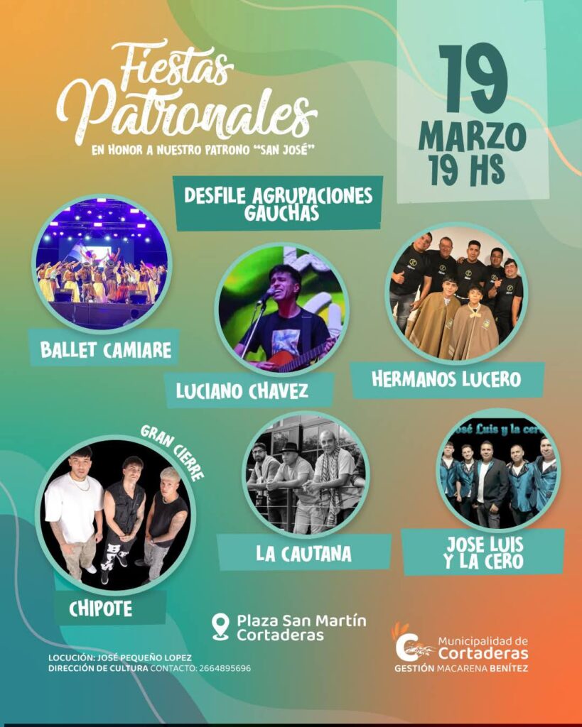 La localidad de Cortaderas se prepara para vivir una de sus celebraciones más significativas del calendario local: las Fiestas Patronales en honor a San José. El encuentro se realizará el 18 y 19 de marzo, con una propuesta que reunirá fe, cultura y música popular en un ambiente de encuentro familiar.