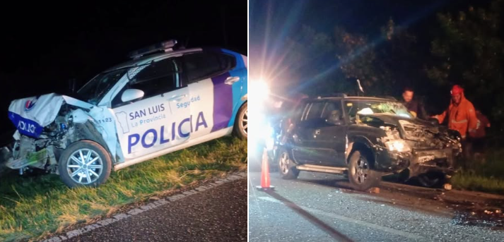A raíz de ese impacto, la camioneta cruzó de carril y chocó de frente con un móvil policial que circulaba de sur a norte realizando recorridos de prevención por la ruta. En el patrullero viajaban dos efectivos de 27 y 43 años.