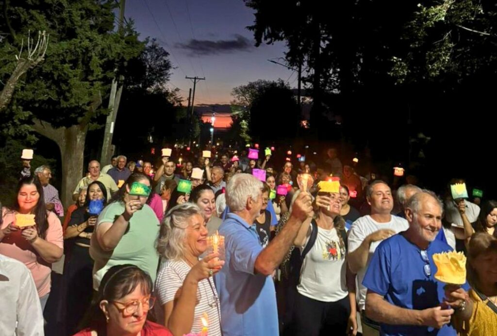 Al caer la noche, la celebración tomó un tono festivo. El predio se vistió de fiesta con la participación de artistas locales, puestos de artesanos y una importante presencia de turistas que se acercaron a disfrutar de esta propuesta que año a año crece en convocatoria. Música, danzas y expresiones culturales dieron forma a una velada que reflejó el espíritu de un pueblo que honra sus tradiciones.