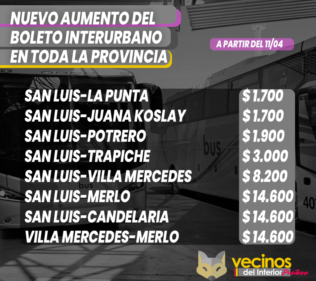 La dirección de Transporte de la Provincia informó que a partir del sábado 11 de abril entrará en vigencia una actualización en las tarifas del servicio interurbano, con incrementos que oscilarán entre el 5% y el 11%, según se trate de tramos de corta, media o larga distancia.