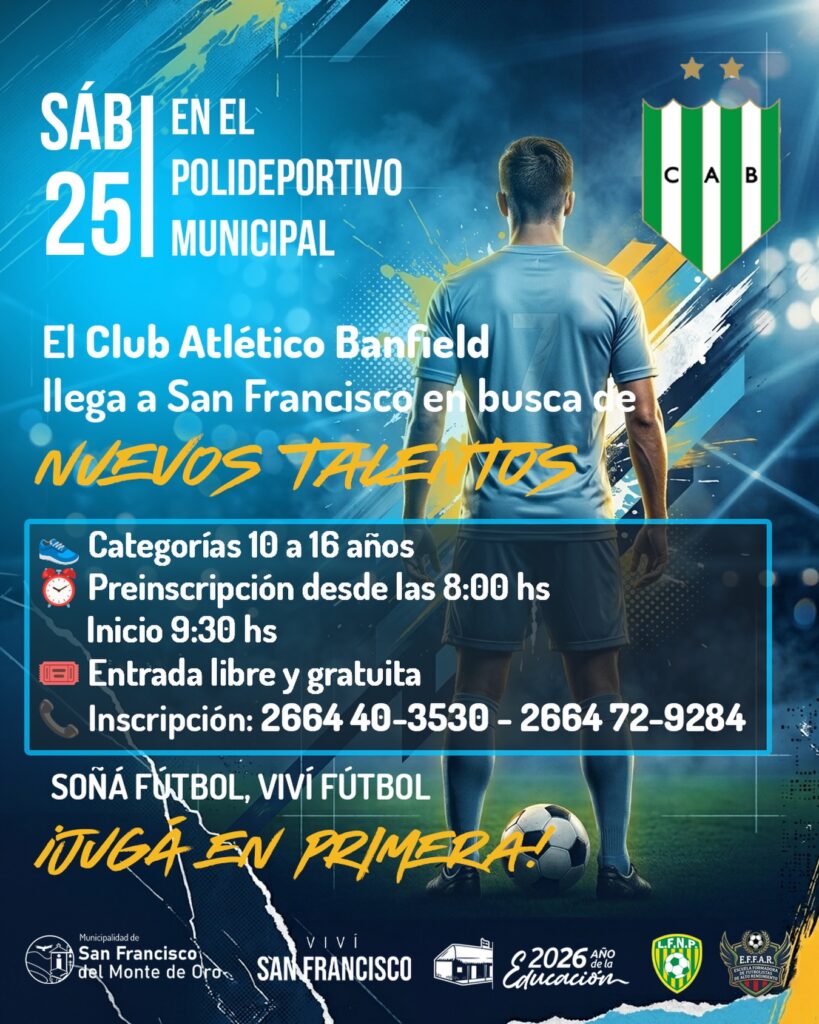 Este sábado San Francisco del Monte de Oro será sede de una jornada de captación de Club Atlético Banfield